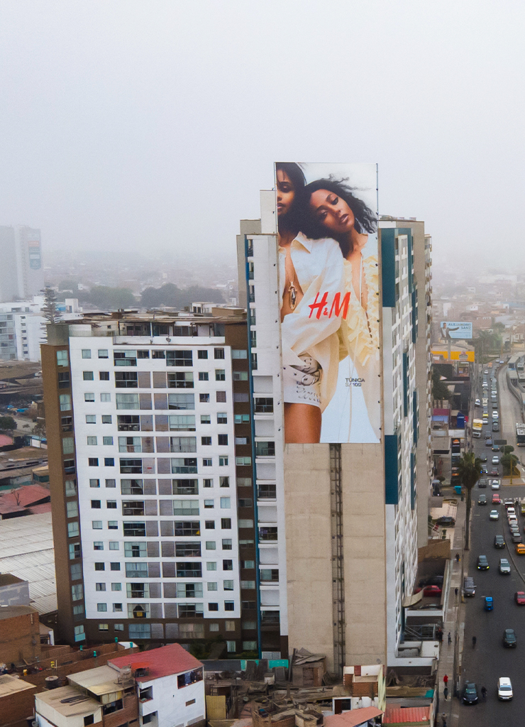 Nuestras banderolas de gran tamaño llegando a medir hasta 1020 mts2, se encuentran adosadas a las paredes de edificios que permiten captar la atención y generan visibilidad a gran distancia, trasmitiendo el mensaje de tu campaña de manera creativa y atractiva.